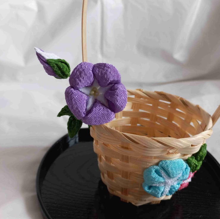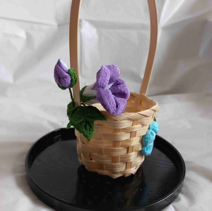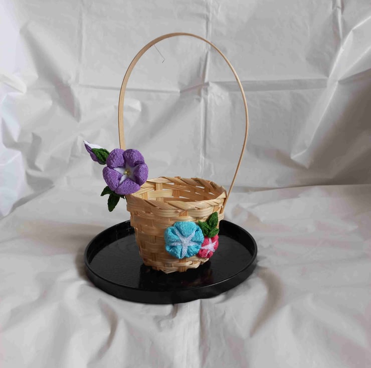 I designed a bamboo basket with a Japanese flower, morning glory. Many of these flowers bloom in summer in Japan. It is a representative summer flower in Japan.