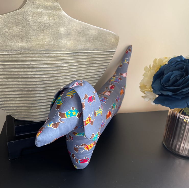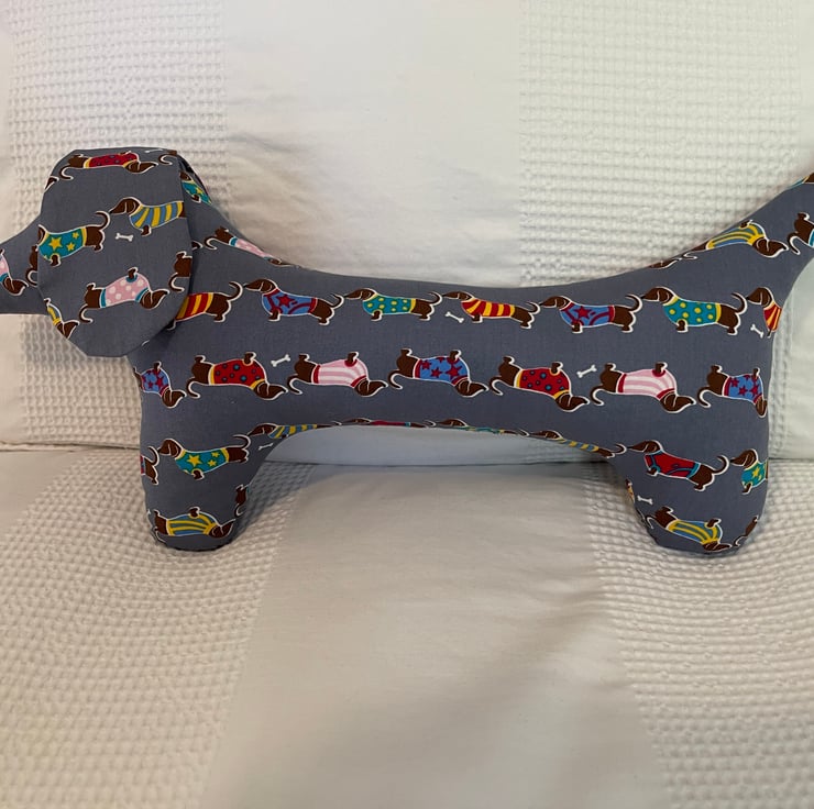 Gorgeous sausage dog shaped cushion.