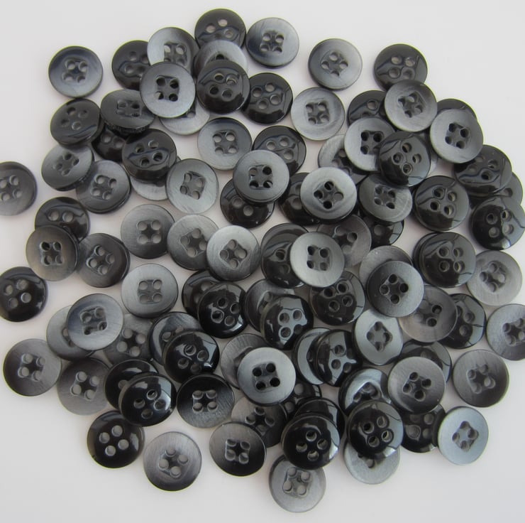 Bargain lot of 100 grey (black on the back) 10 mm buttons suitable for dressmaking, crafts etc.