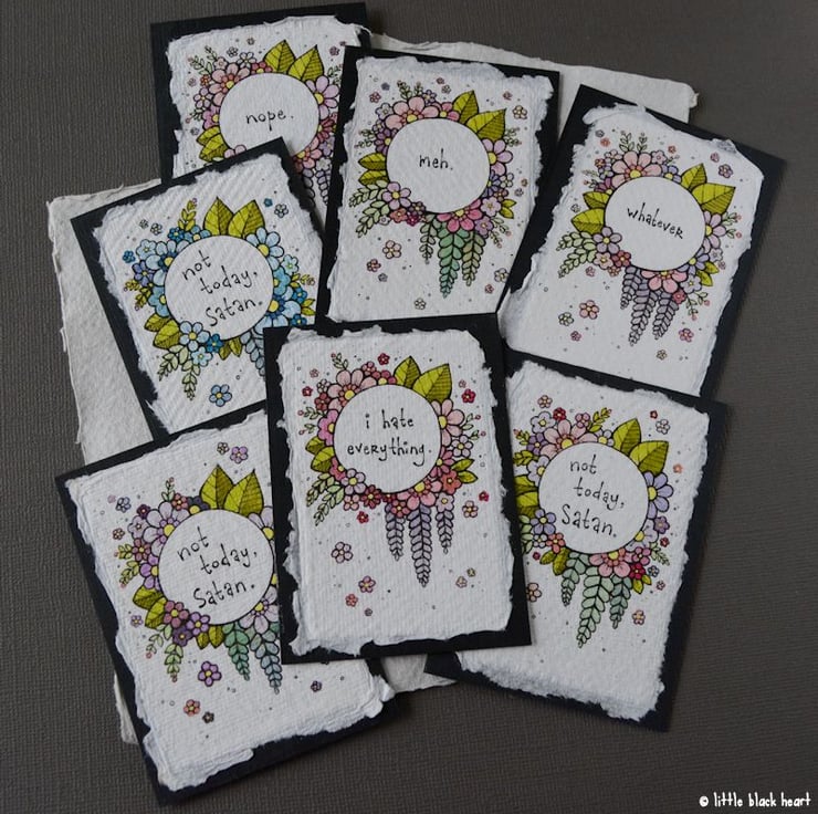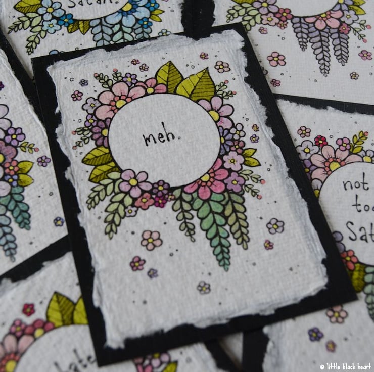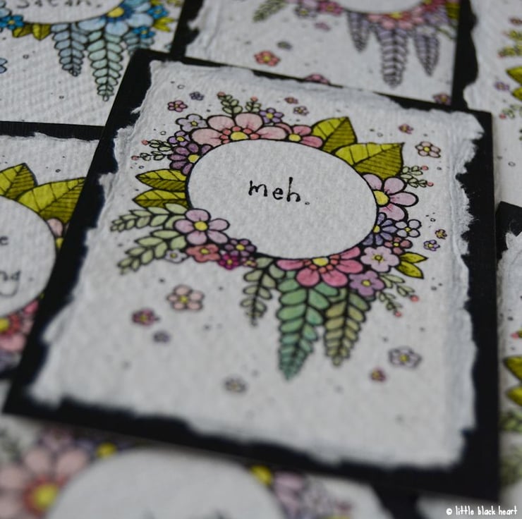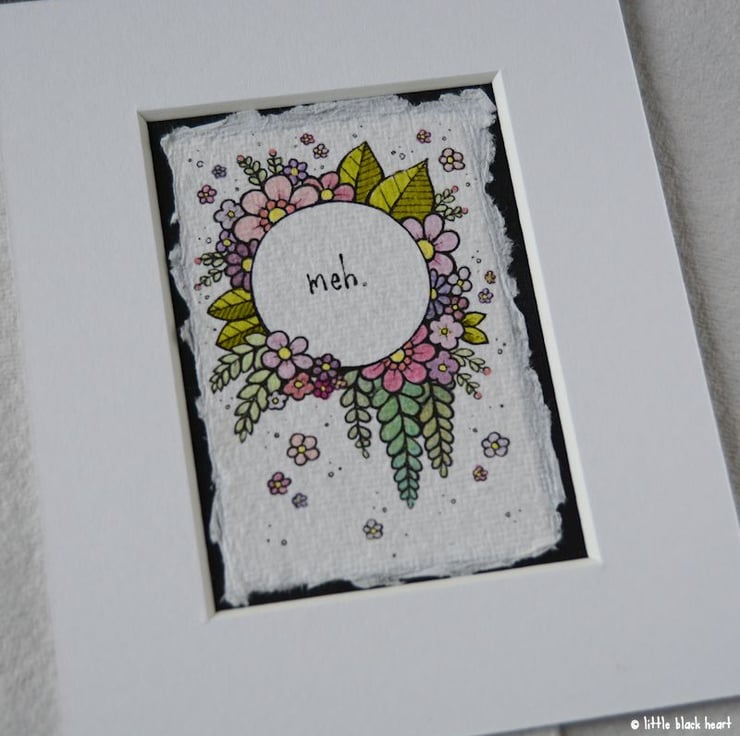 khadi paper is handmade in india from recycled cotton rag, it has a lovely textured surface and deckled edges. I have then mounted the illustration onto a hand painted aceo.