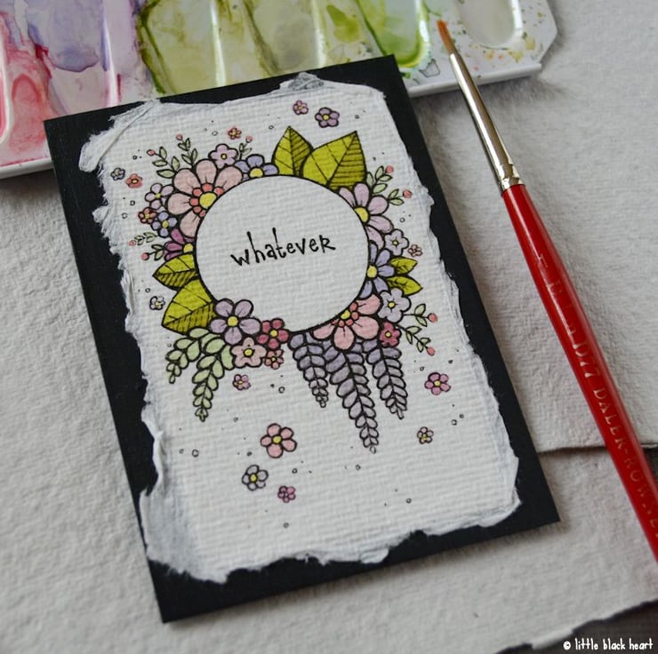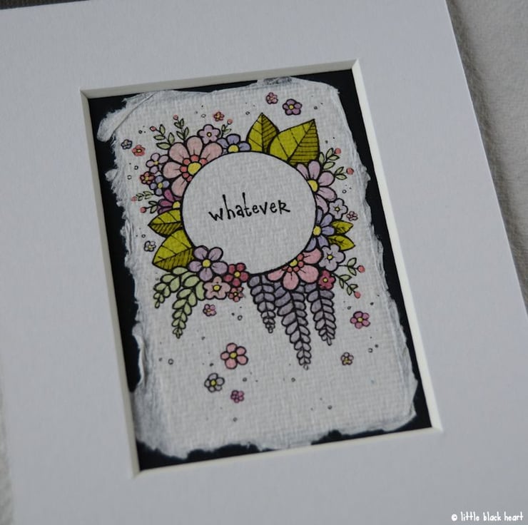 khadi paper is handmade in india from recycled cotton rag, it has a lovely textured surface and deckled edges. I have then mounted the illustration onto a hand painted aceo.