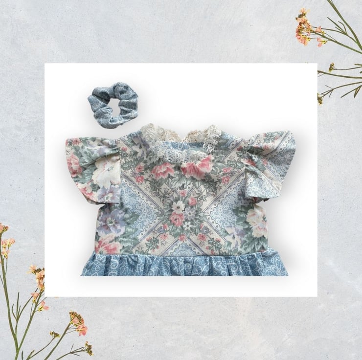 This dress would be perfect for a summers day, I can really see a little girl skipping along the path wearing it. She was originally bed linen and I fell in love with it as soon as I set eyes on it. It's so pretty and I'm really please with how she looks in her new life as a dress. Perfect for that grand summers day out!