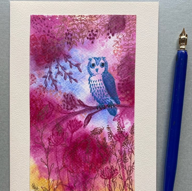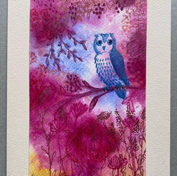 Hand painted on watercolour paper adhered to quality card stock, this blank card can be used for greetings on any occasion. It measures approx 15 x 10 cms and comes with an envelope in a cello bag. Postage to UK destinations is free.