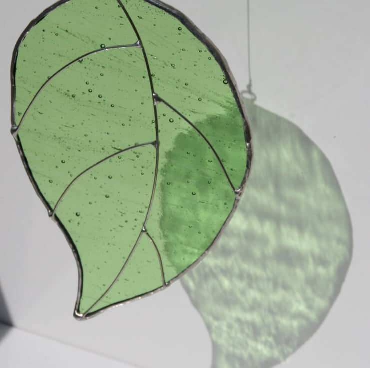 The leaf is hand cut and grinded to give an even edge. The edges are then wrapped in copper foil before solder is added and wire work added. It is then thoroughly washed and wax polished. I will add a little ladybird for you to attach to the leaf in the place you feel best.