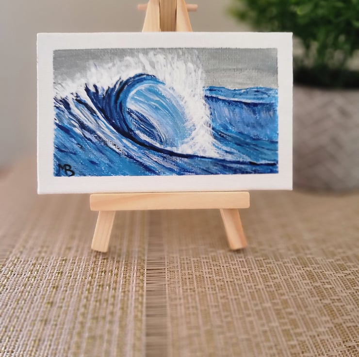 Original acrylic mini painting on canvas board coming with mini wooden easel.