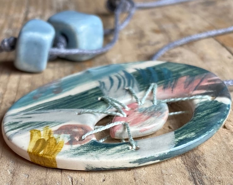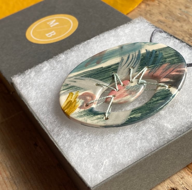 The Necklace will be beautifully wrapped and sent in letterbox friendly packaging. Such a unique and beautiful piece of handmade ceramic jewellery art to own or gift.