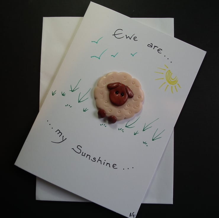 Spring Sale ... Handcrafted 'Ewe are my Sunshine' card by Ann Galvin A5 5"x7"