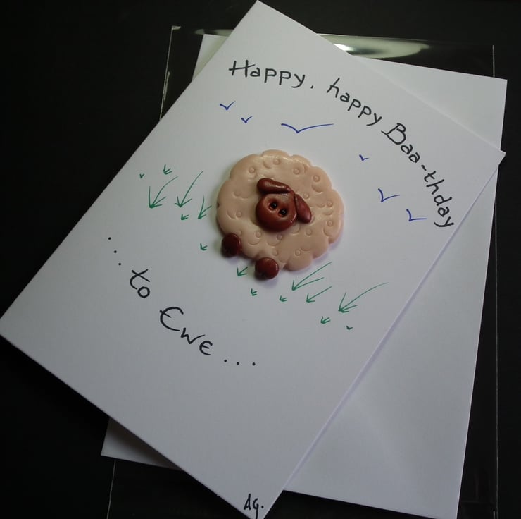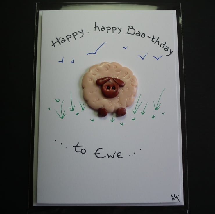 Spring Sale ... Handcrafted 'Ewe' card by Ann Galvin A5 5"x7"
