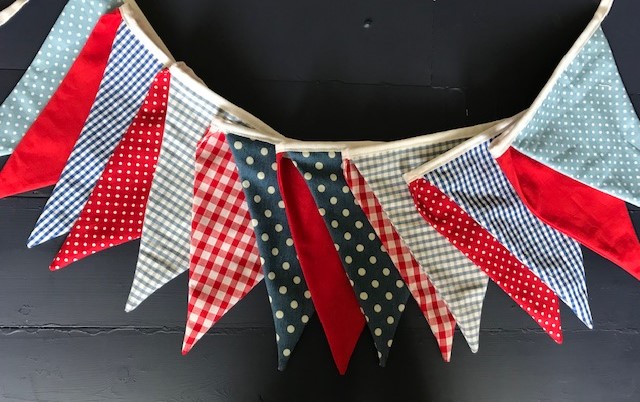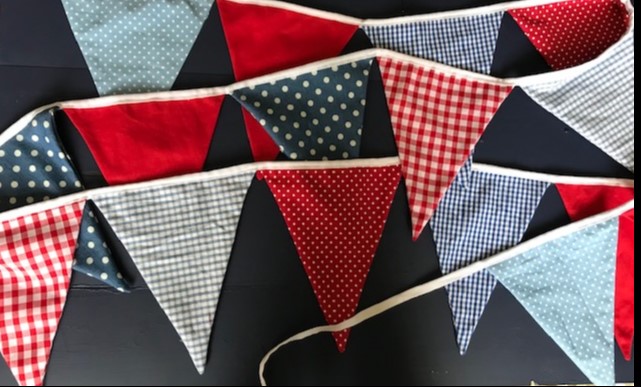 Four strings of red, white and blue bunting each measuring approx 2.5 metres.