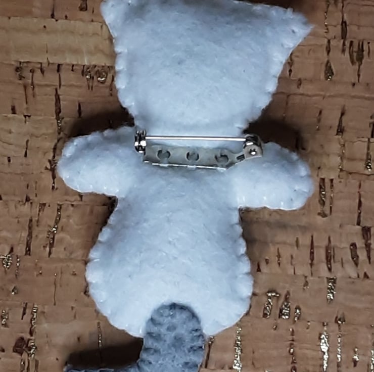 There is a brooch bar attached to the back of each brooch. It is lightly stuffed with toy stuffing.