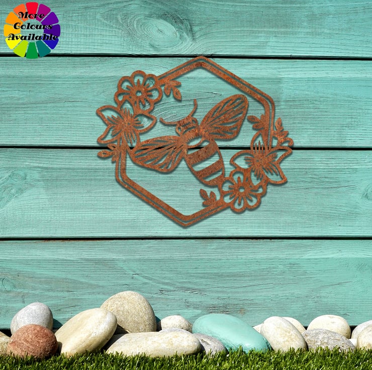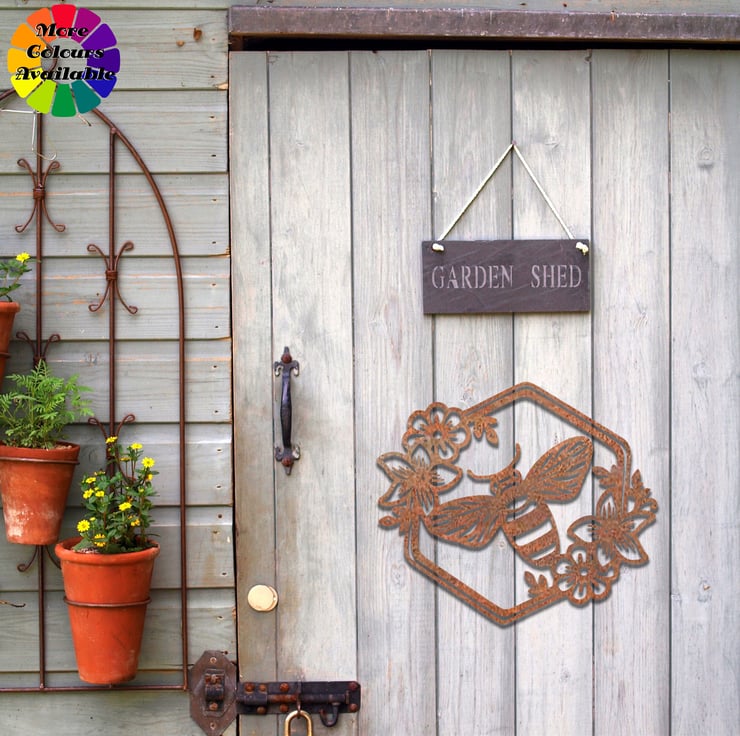 Adorn your garden with our charming Bee Wall Art. This rusty metal bumblebee adds a touch of whimsy and natural beauty to any outdoor space. The weathered finish gives it a rustic, earthy look that complements gardens, sheds, or fences. Gift this delightful outdoor garden wall art to a friend who adores bees or as a special touch to your own garden. Transform your outdoor space into a buzzing wonderland with this captivating bee decor.