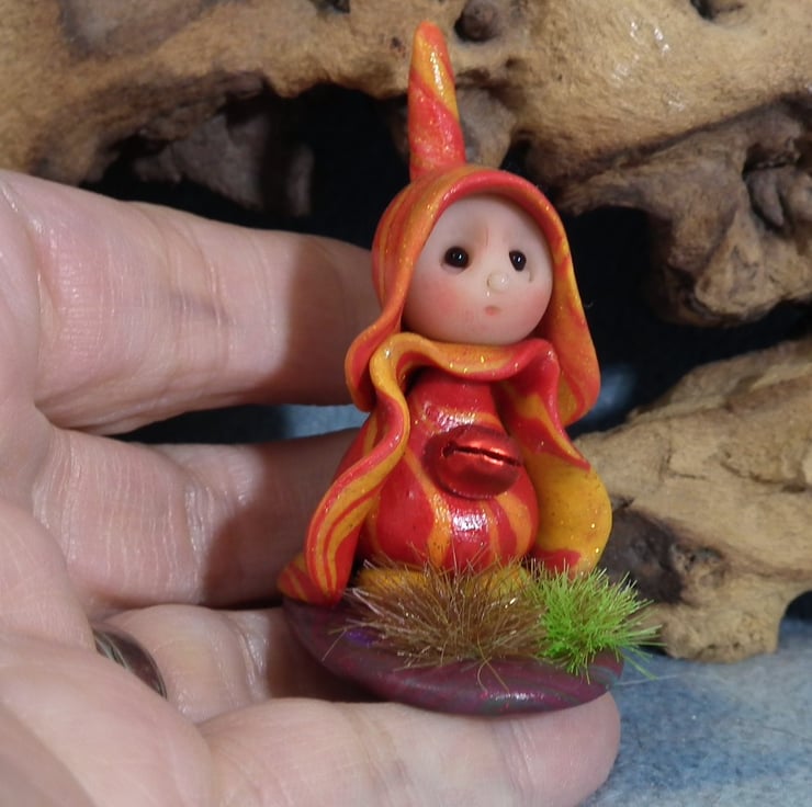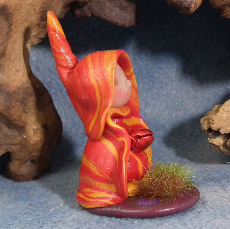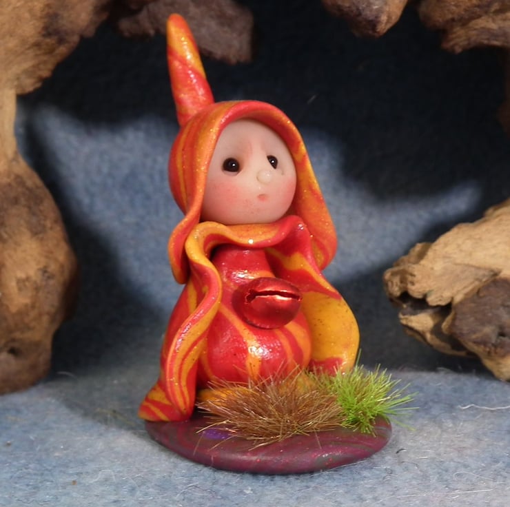 This is a 'one of a kind' creation having been entirely handmade without the use of moulds here at my studio on the Sussex Coast. Modelled with artist blend polymers, blushed before sealing with lacquer and featuring sparkling black onyx eyes and variegated robes. This Meadow Gnome is just one and a half inches tall.