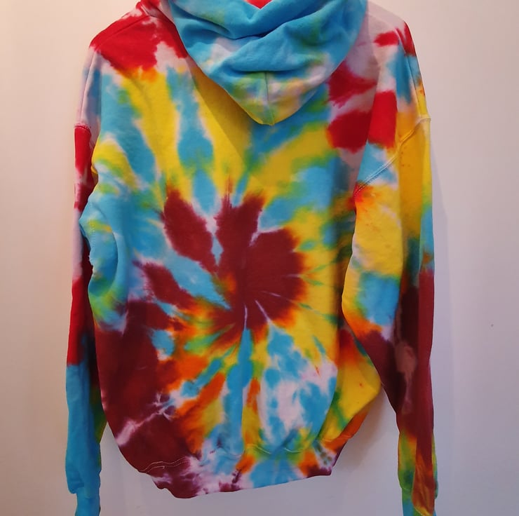 This hoodie is hand-dyed to order using fibre reactive dyes. Due to the unpredictable nature of tie dye, the results can never be guaranteed, meaning that each item is truly unique.