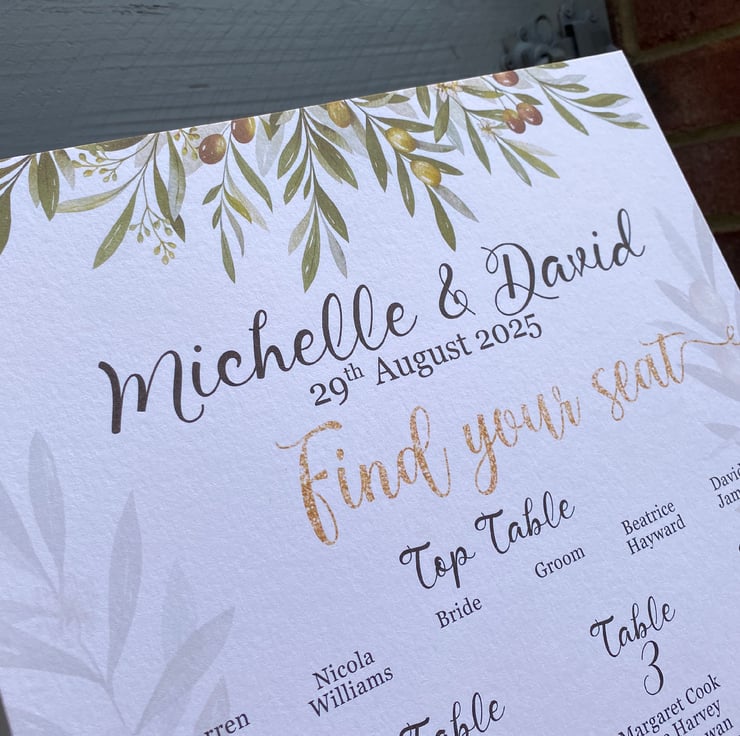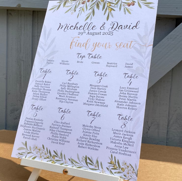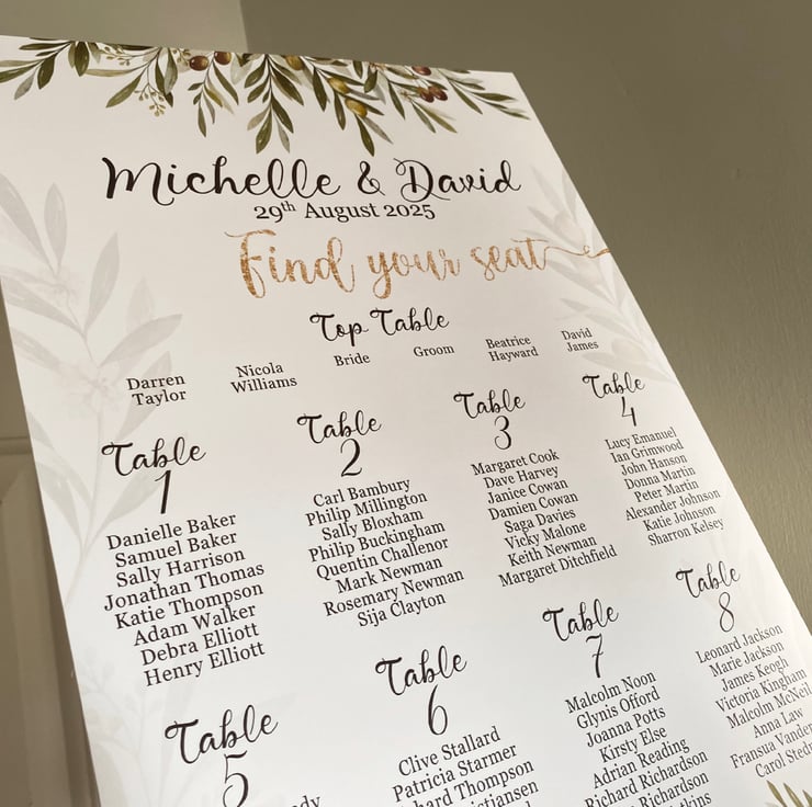 1. Personalised TABLE plan sign in A2 size (Ultra matt photographic paper poster, 240gsm)