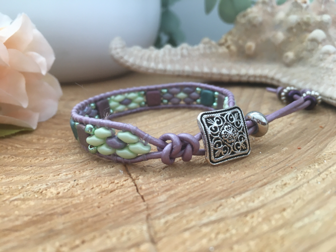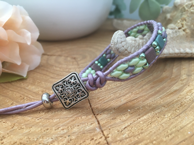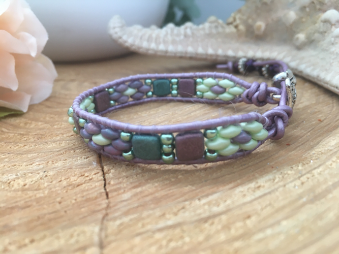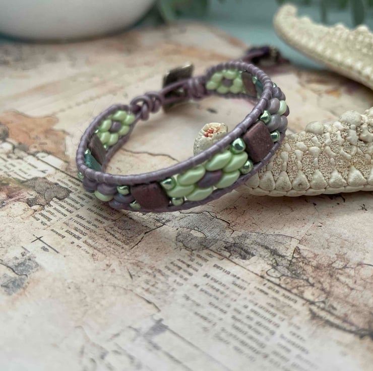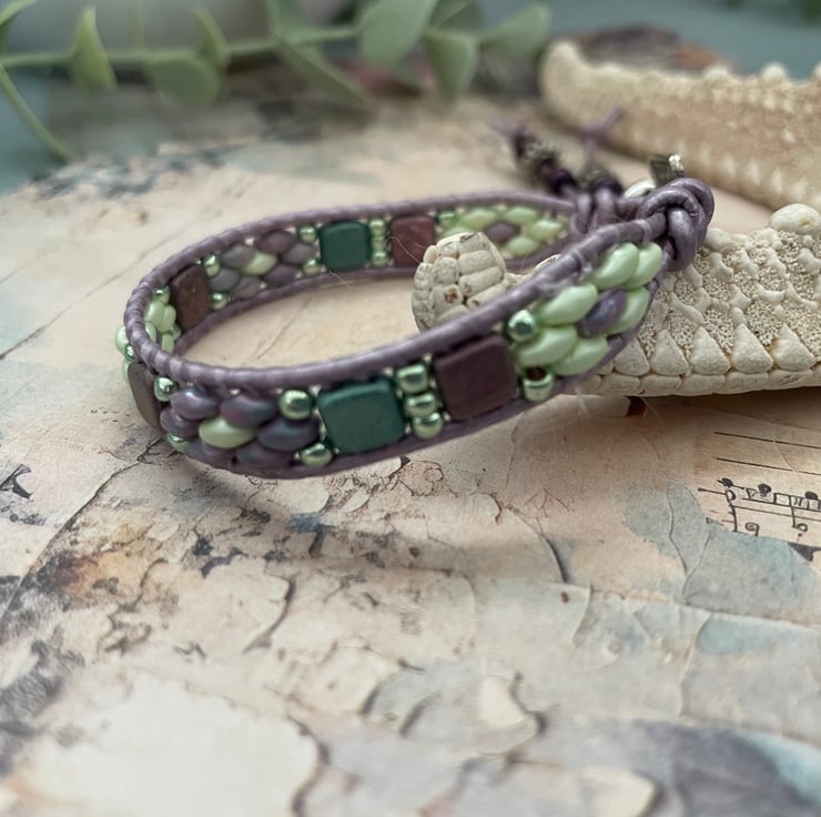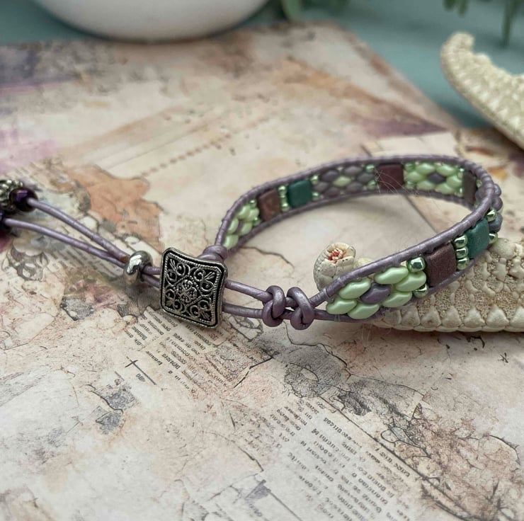 To create this design I have lovingly woven a selection of Czech Super duo, Czech mate tile beads and tiny seed glass beads onto 1.5 mm soft Italian leather cord . Czech beads are considered to be of the highest quality for durability and depth of colour.