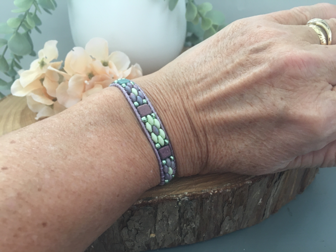 In pretty Summery tones of lilac, mint green and mauve this bracelet is designed to wrap around the wrist once, but would look fantastic stacked with other bracelets for that boho look. Extremely easy to wear light weight and versatile. Would look great with a casual pair of jeans or dressed up with a pretty floral summer dress.