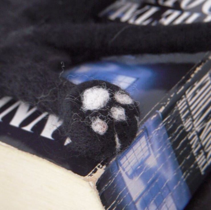 Sounds cheesy but I actually dreamt about a wee felt bookmark with the little paws poking out the pages of the book. Splats were born in my shops in 2010 and have been a top seller since