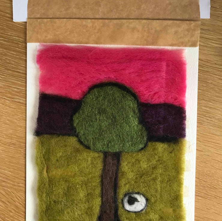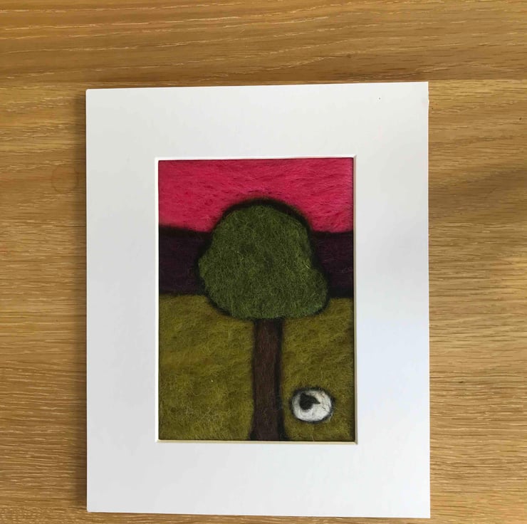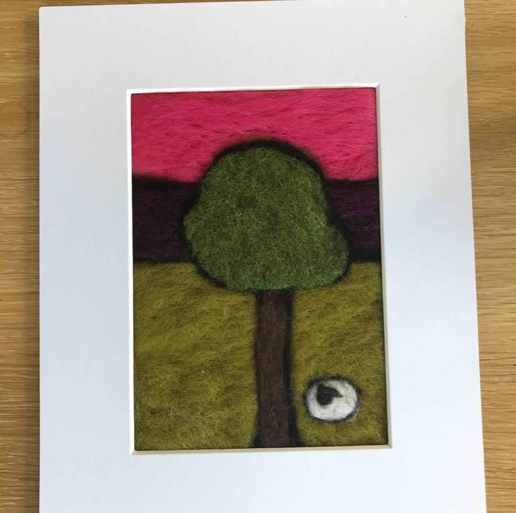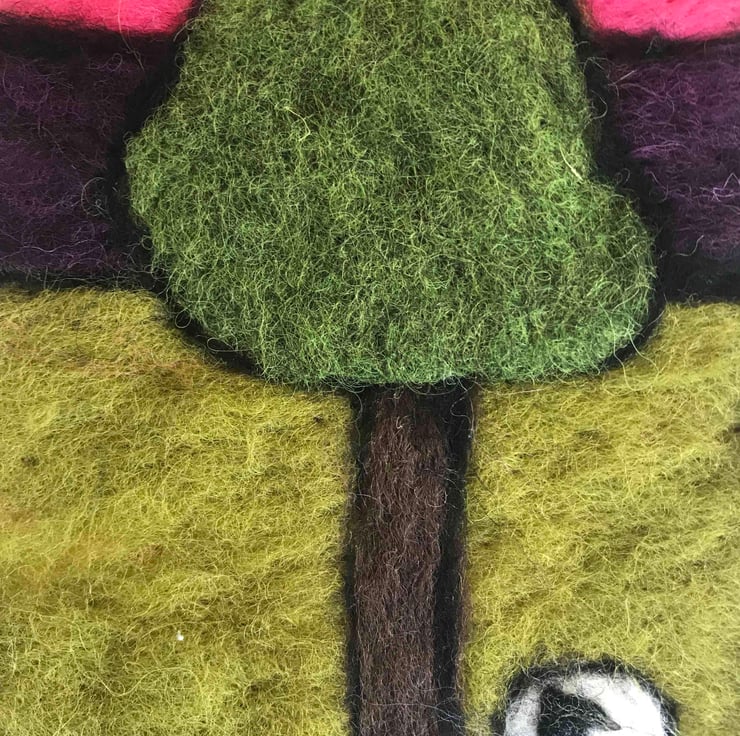 Needle felted in block colours, out lined with black wool to give a modern twist to a landscape picture.