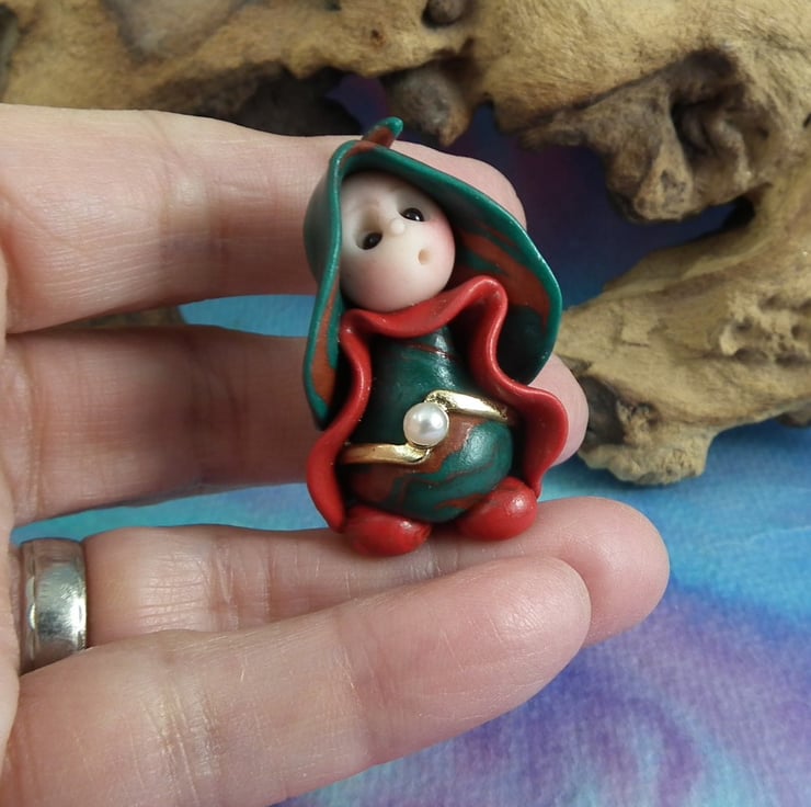 Spring Sale! Henn is a tiny Garden Gnome with flowing robes and pearl belt ...