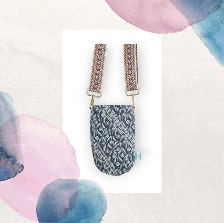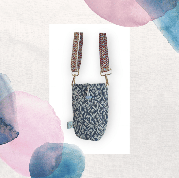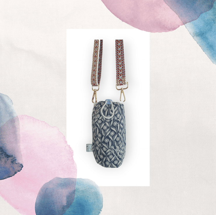 This geometric flower print is bang on trend at the moment, and ideal for the summer. It has a wide patterned strap for comfort which is also adjustable and detachable if required, and there's a handy little pocket at the front. The water must be chilled before you put it in the water cooler, and will keep it cool for up to approximately 2 HOURS. And there's also an elasticated top to keep the cold in!