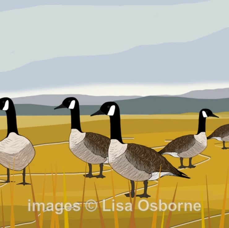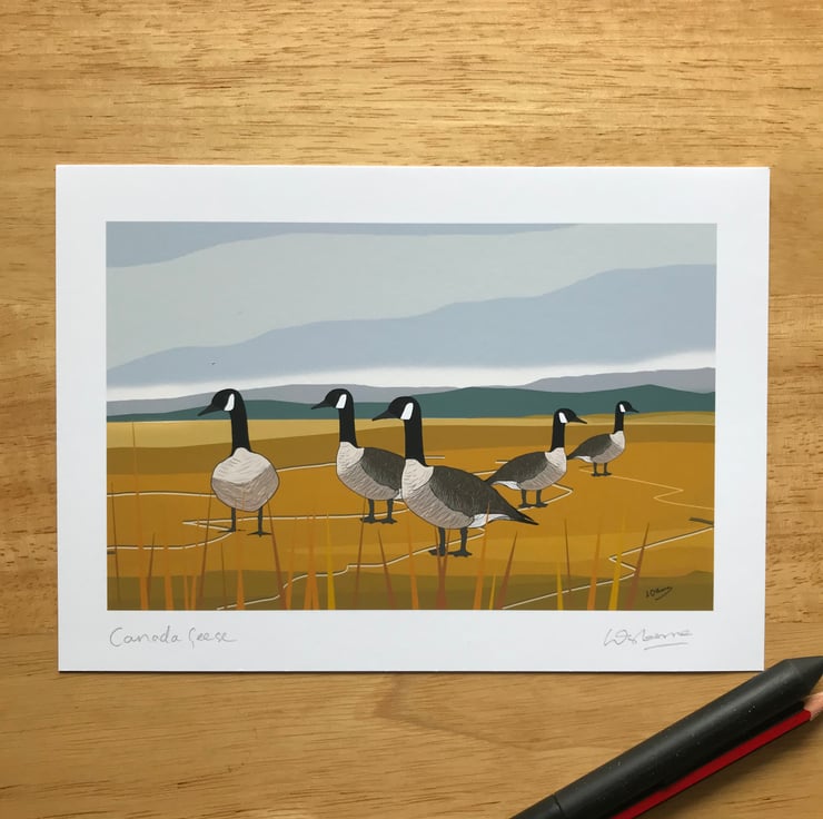 Canada geese - A5 colourful print of geese from one of my digital illustrations.