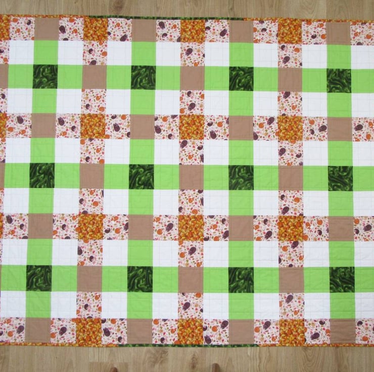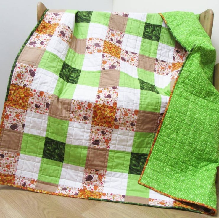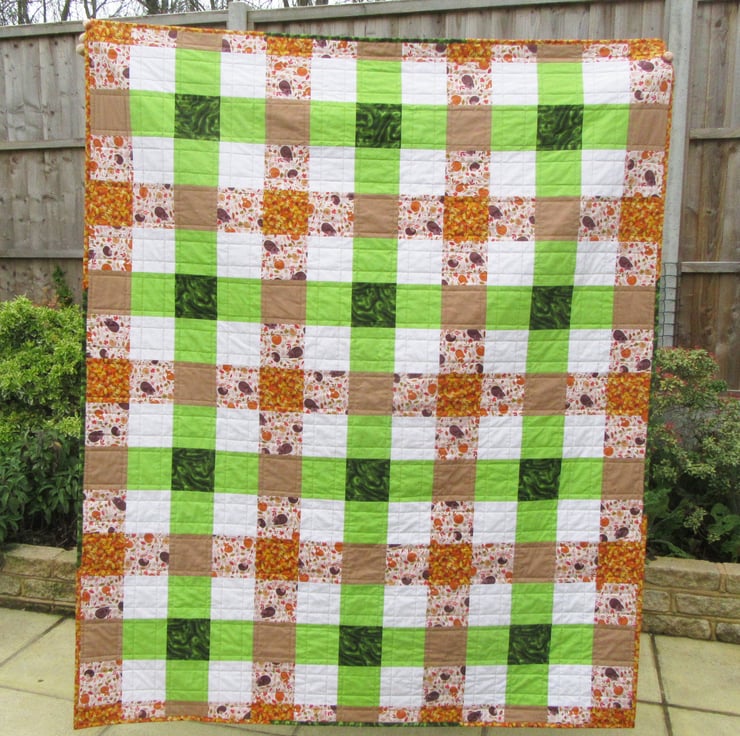 Each square measures 4" (10cm). The quilt measures 53" wide x 63" long (135cm x 160cm). An ideal size to use as a sofa throw, bed throw or picnic blanket.