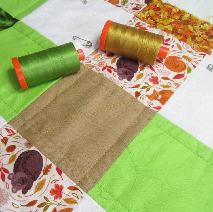 I have machine quilted the three layers together using a stitching design to echo and emphasise the plaid style pattern of the patchwork.