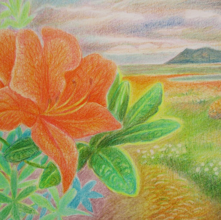 I have combined photographs and memories to create this peaceful image of a place I loved, although I have only visited once. My memories of this place are vivid and I wanted to reflect this in the artwork.