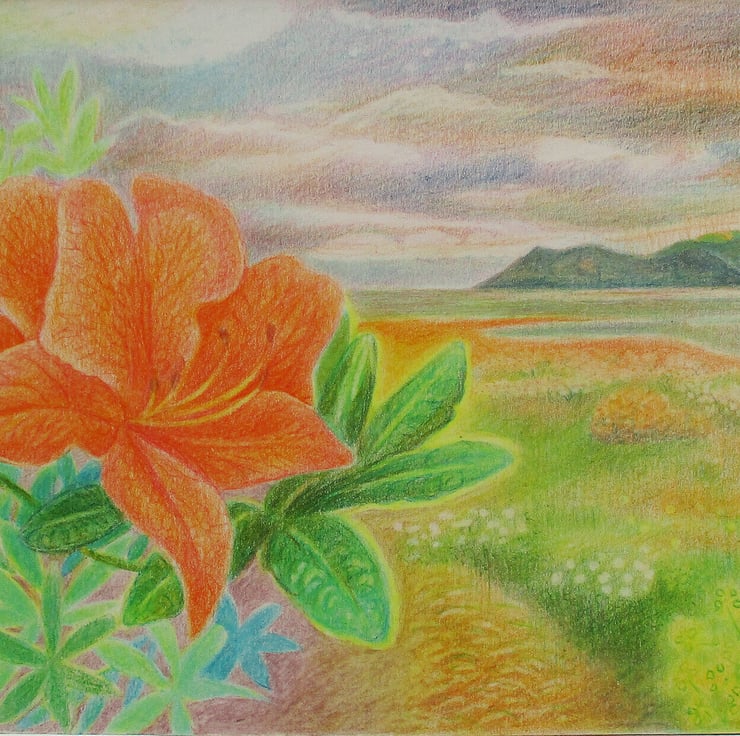 This original coloured pencil drawing is an imagined scene based on memories and photographs of a lovely holiday some years ago at Skipness, Kintyre, on the Scottish coast.