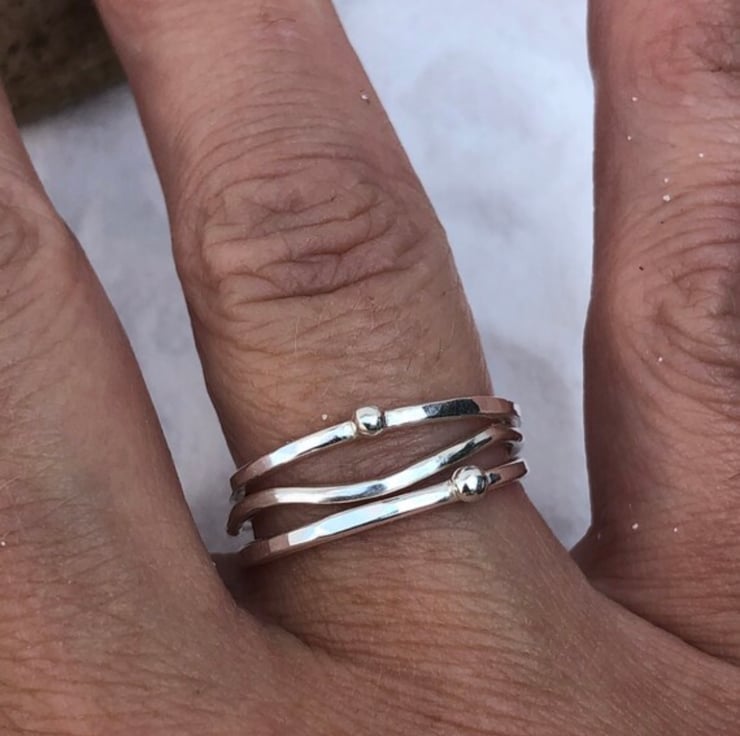Wave Stack Ring, silver stack ring, bubbles ring, mixed metals,