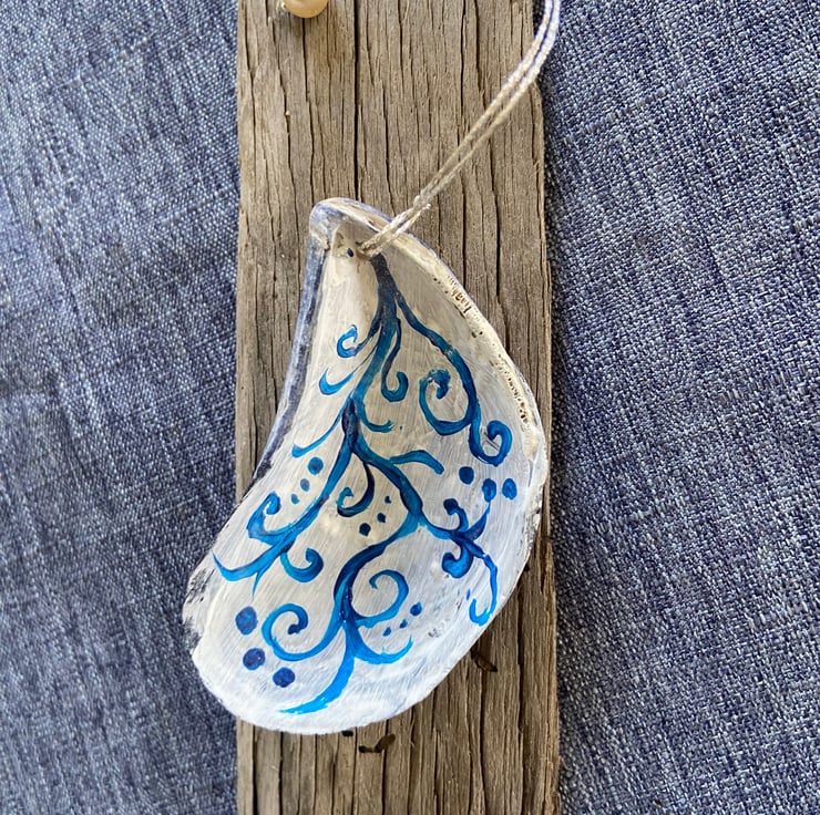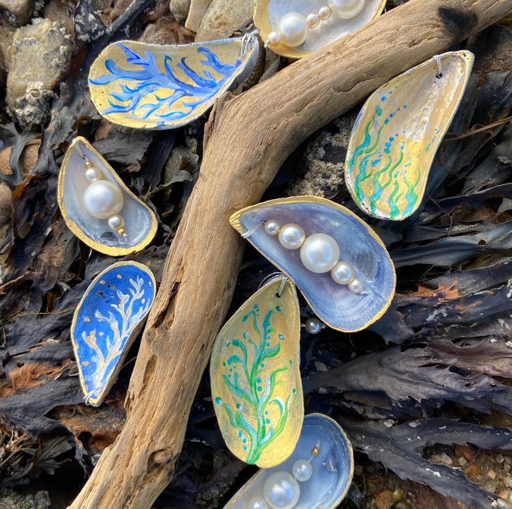 This one of a kind hand painted mussel shell was collected whilst beach-combing on the shore near my home. Painted with acrylics in an ethereal, floaty design reminiscent of the seaweed and underwater beauty beneath the waves. The inside of the shell is painted with the outside left in its natural form.