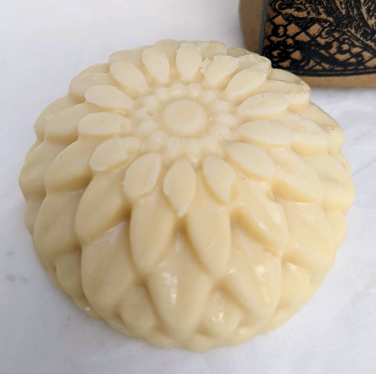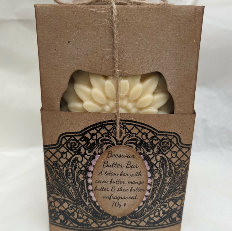 This lotion bar contains Beeswax, Cocoa Butter, Shea Butter & Mango Butter. Use either after a bath or shower, whilst your skin is still warm (the bar will melt on the skin), or actually in the bath/ shower, after washing- rub on wet skin and pat dry with a towel.