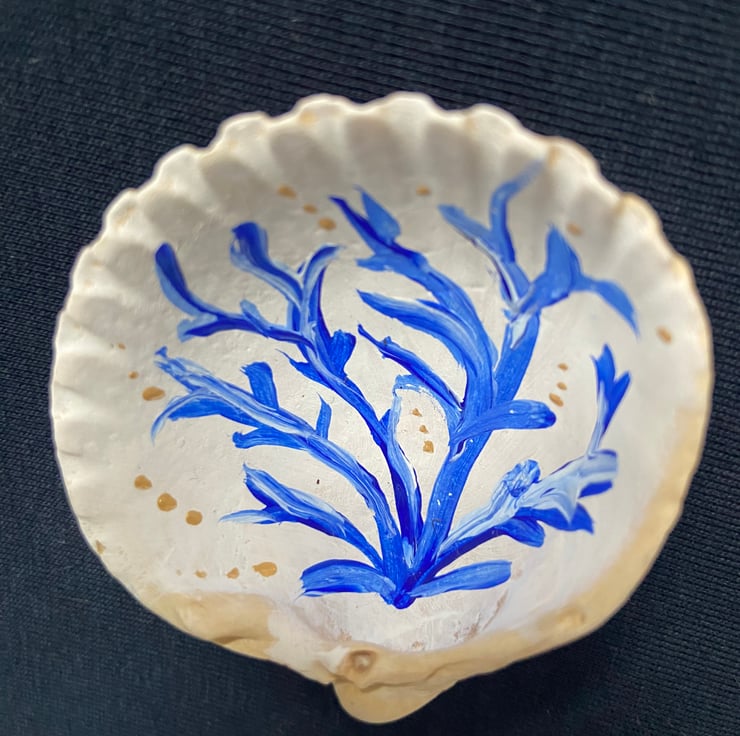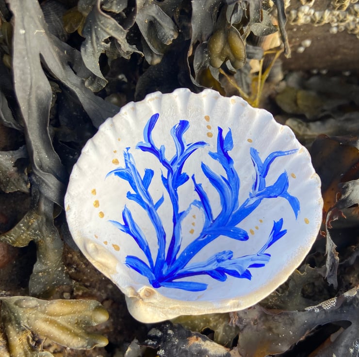 This one of a kind hand painted shell was collected whilst beach-combing on the shore near my home. Painted with acrylics in an ethereal, floaty design reminiscent of the seaweed and underwater beauty beneath the waves. The inside of the shell is painted with the outside left in its natural form.