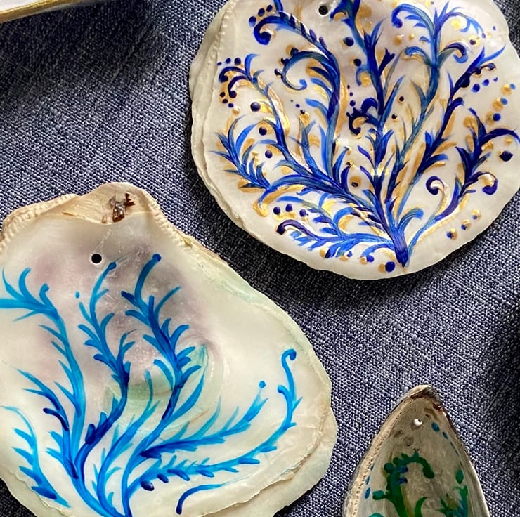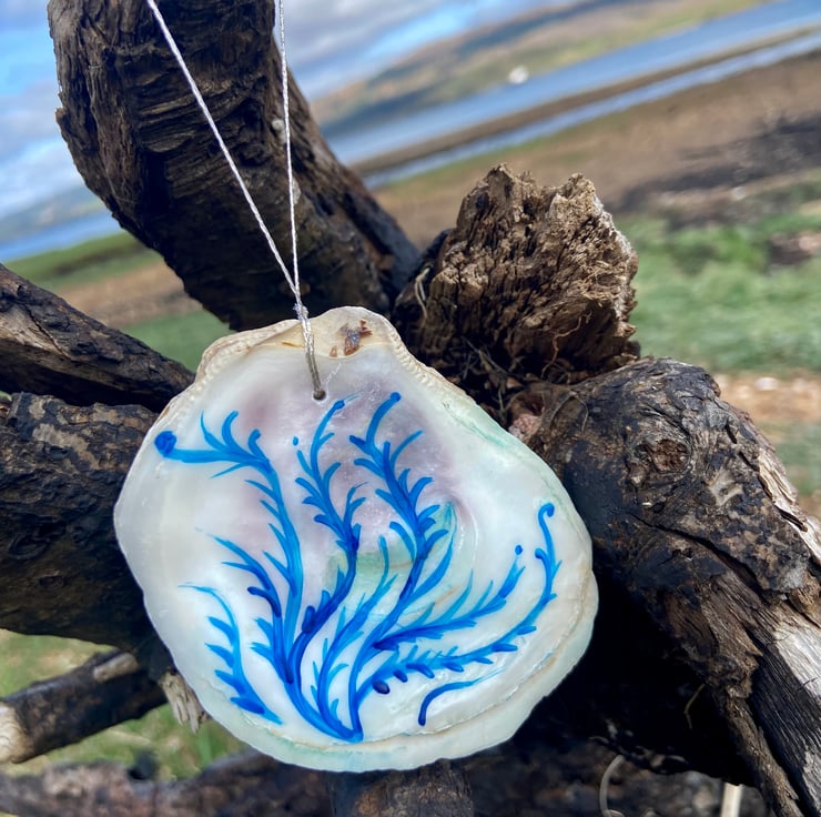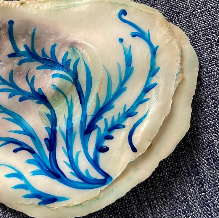 This one of a kind hand painted oyster shell was collected whilst beach-combing on the shore near my home. Painted with acrylics in an ethereal, floaty design reminiscent of the seaweed and underwater beauty beneath the waves. The inside of the shell is painted with the outside left in its natural form.
