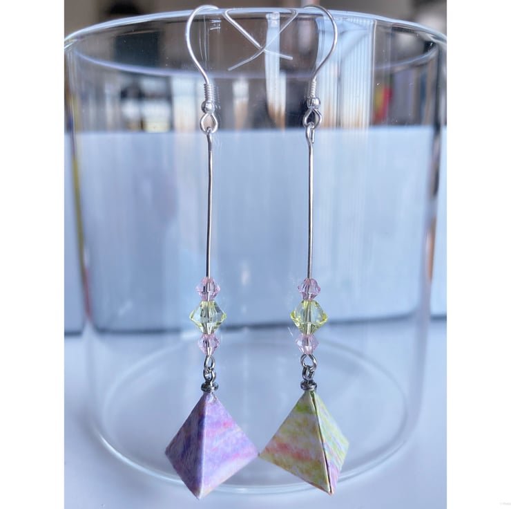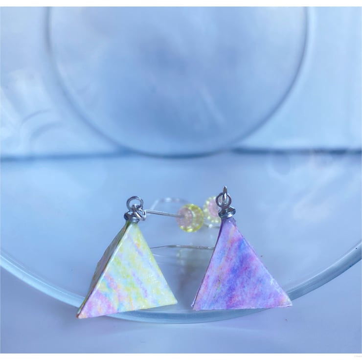Handmade and carefully crafted origami 3D triangle earrings, each piece is unique.