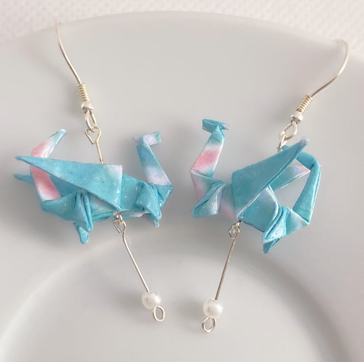 Handmade and carefully crafted origami dragon earrings, each piece is unique.