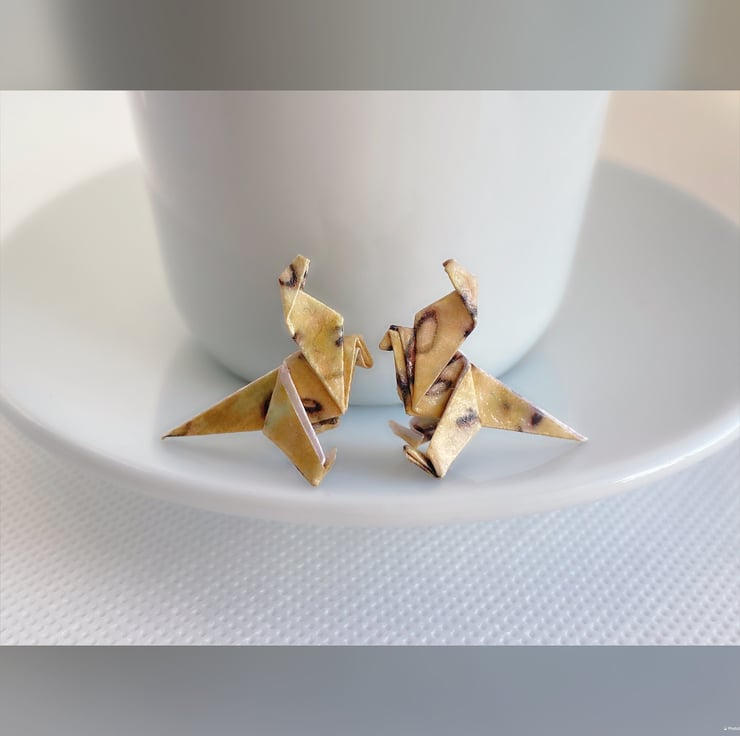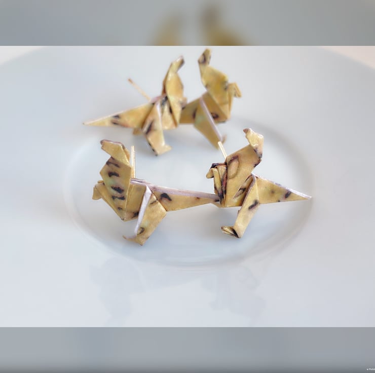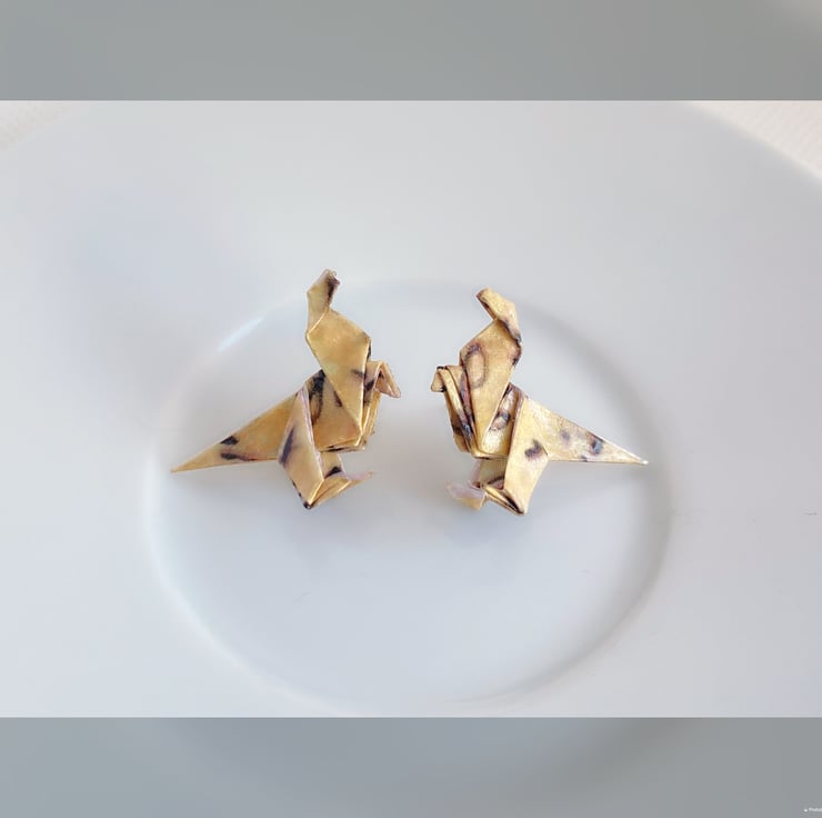 Handmade and carefully crafted origami dinosaur earrings, each piece is unique.