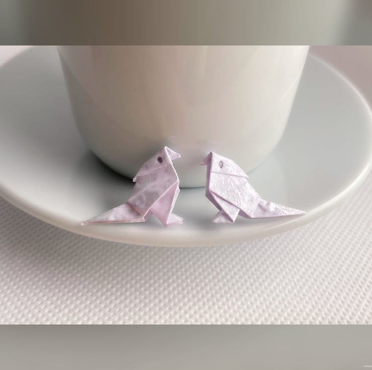 Handmade and carefully crafted origami bird earrings, each piece is unique.
