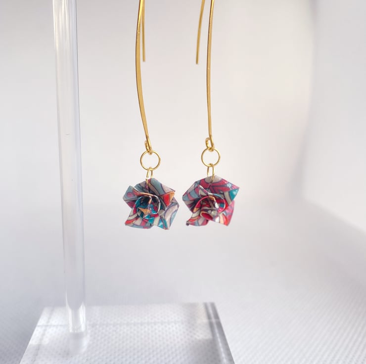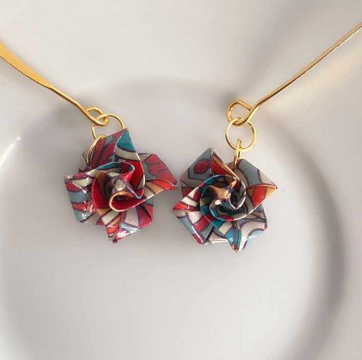 The earrings have been finished with 3 coats of lacquer for durability and protection, however they are still made out of paper so are not suitable for wearing in the shower, swimming, perfume or out in the rain!