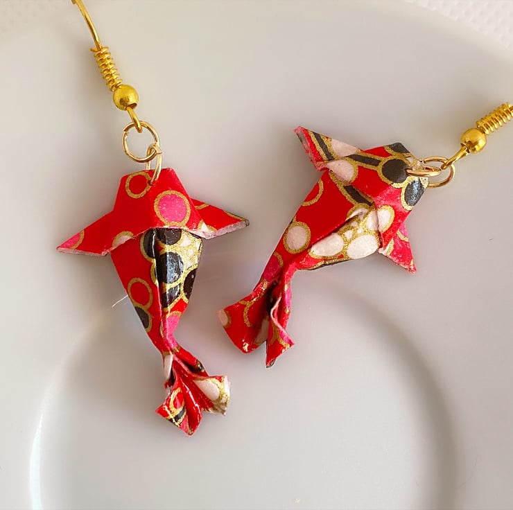 Handmade and carefully crafted origami koi fish earrings, each piece is unique.