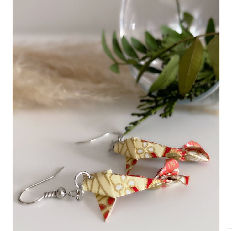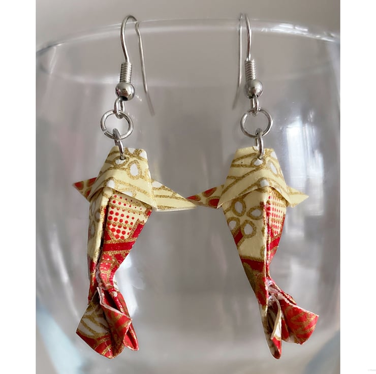 Handmade and carefully crafted origami koi fish earrings, each piece is unique.