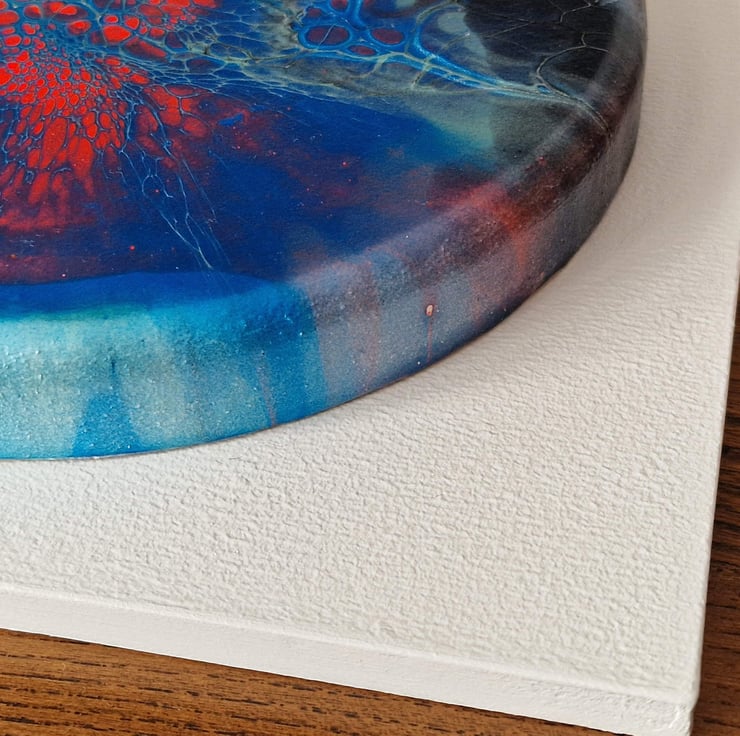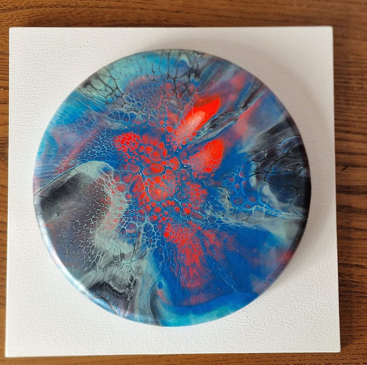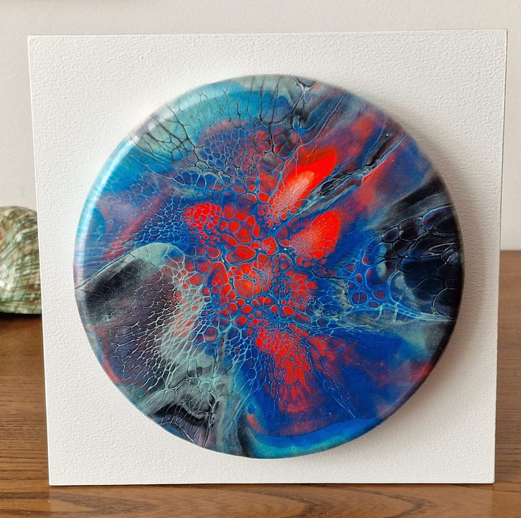 The diameter of the circular painting is 17cm, mounted on a 20.2cm x 20.2cm backboard.