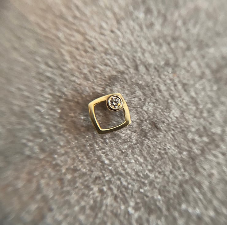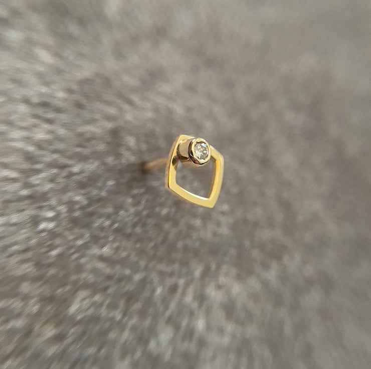 Made in my workshop in Surrey this is a single yellow gold ear stud with one diamond.