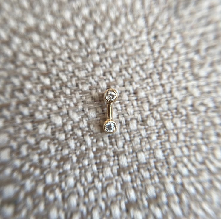 This earring is great at creating the illusion of an extra piercing with the two diamonds at either end of the gold bar.