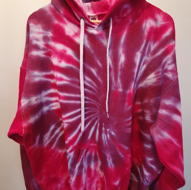 This hoodie is hand-dyed to order using fibre reactive dyes. Due to the unpredictable nature of tie dye, the results can never be guaranteed, meaning that each item is truly unique.