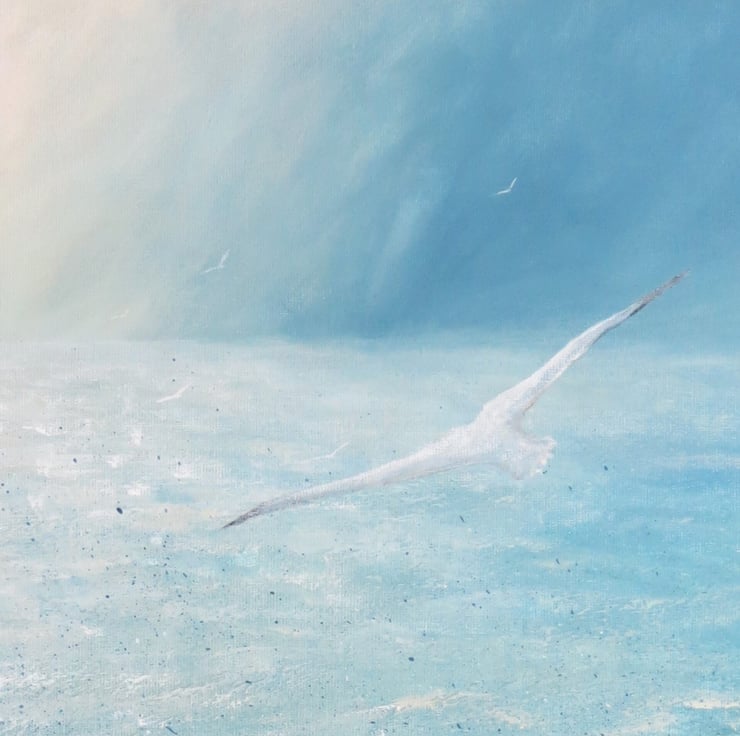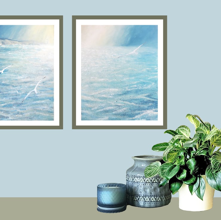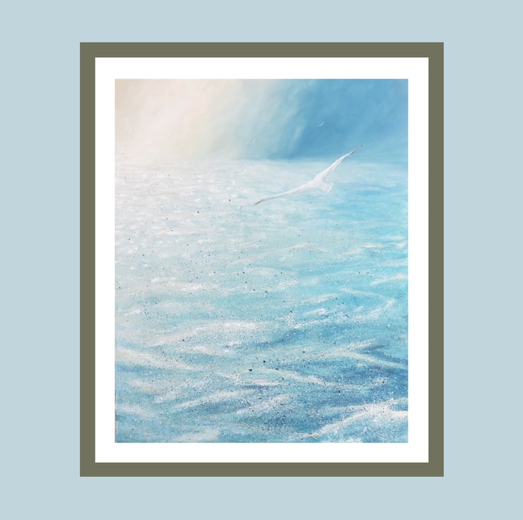 Inspired by the dramatic light and sea textures on the Dorset Jurassic Coast 'And the Gulls Cry' acrylic painting on board. There is a sister painting listed separately in my store which you can see in the final photo.