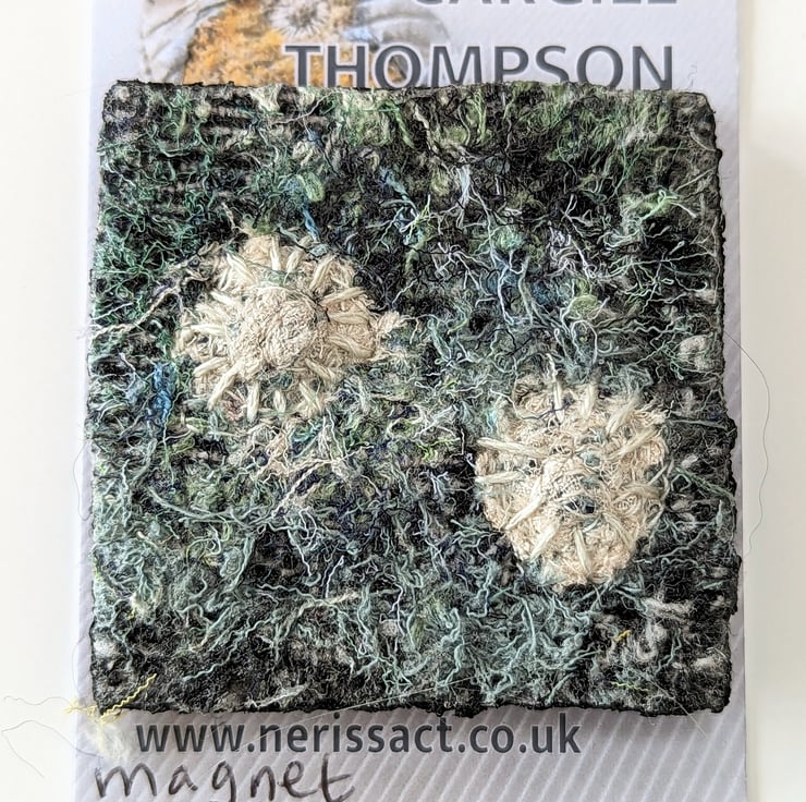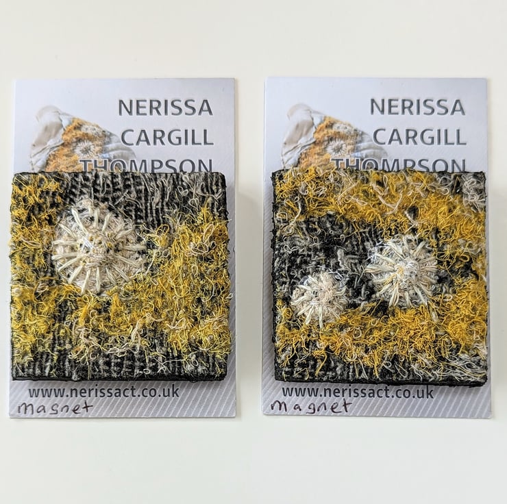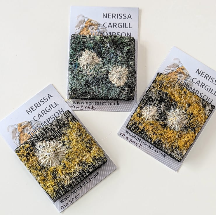 I create coastal inspired textures using a combination of embellishing and embroidery; blending a variety of recycled fabrics to create subtle variations in tone. These are stitched inside waste plastic to cast true to life pieces with cement giving a distinct contrast between the manmade structure of the packaging and the soft natural textures of the textiles.