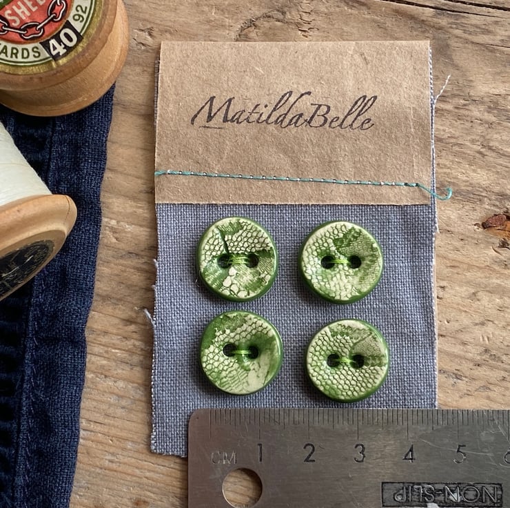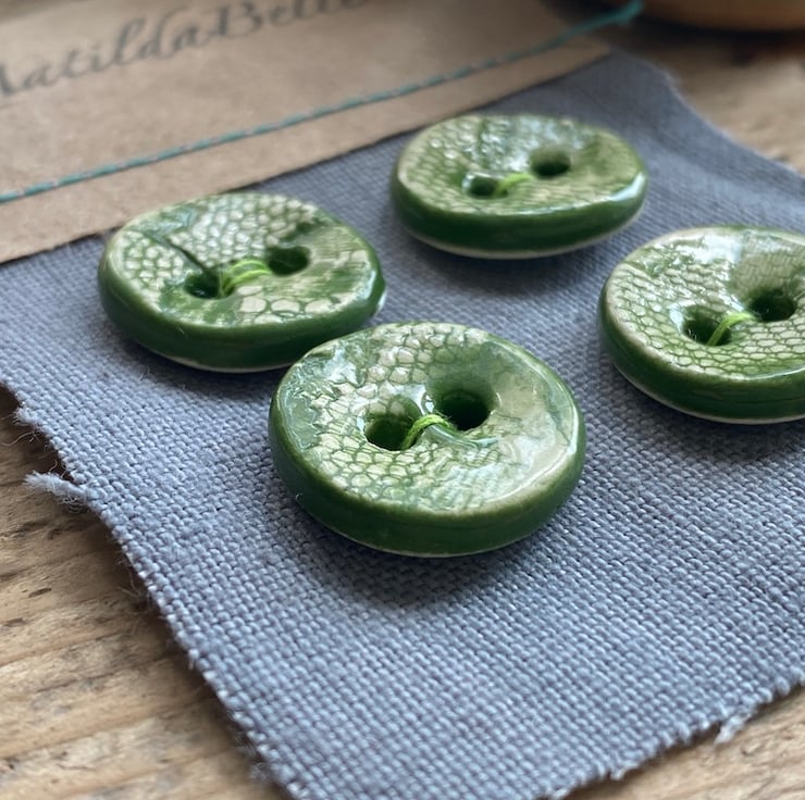 Beautiful set of four small handmade round ceramic buttons.