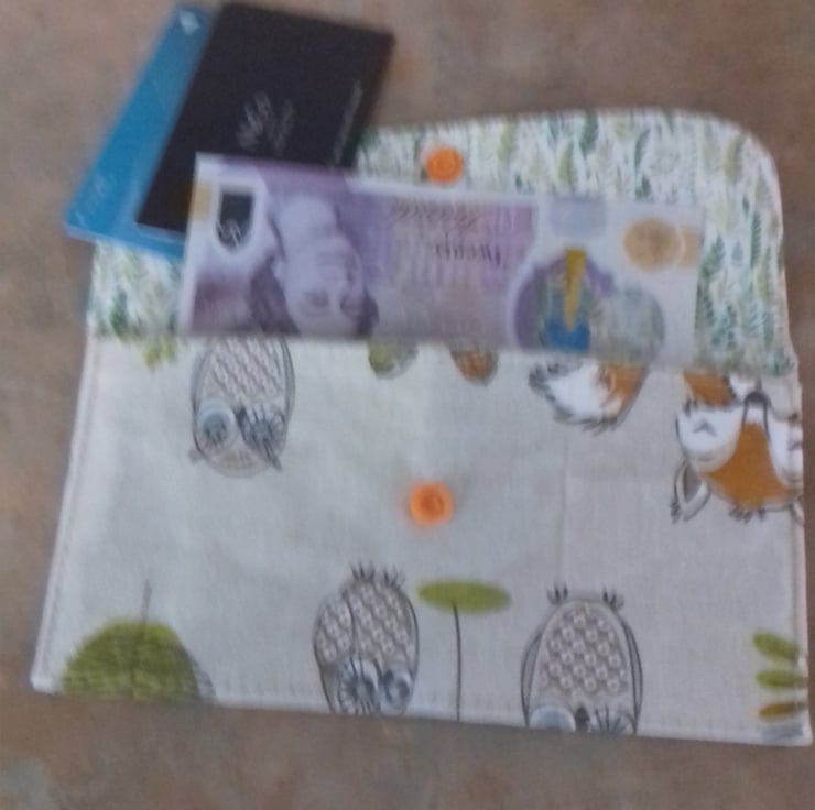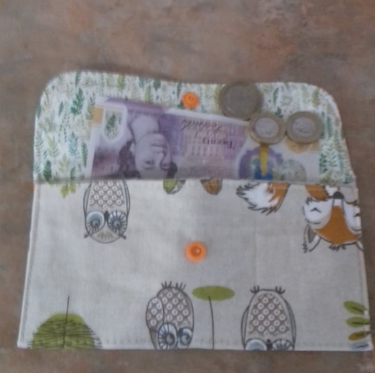 This wallet is made from 100 % cotton fabric in woodland friends.