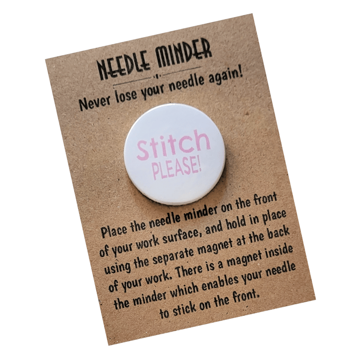 Stitch Please Needle Minder is a must-have item for any crafter. No more struggling to find your needle when you need to take a break from sewing, embroidering or cross stitching! This minder ensures that your needle stays in its place so you don't have to worry about it getting lost in the furniture or fabrics. It's also perfect for keeping patterns close at hand, as well as holding small scissors for precise embroidery work.